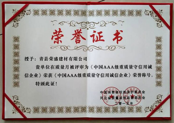 青縣建材3A級(jí)重質(zhì)量守信用誠(chéng)信企業(yè)
